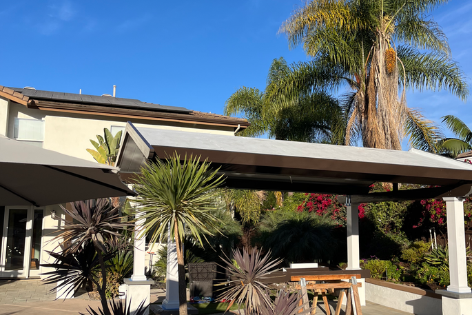 Custom patio cover and elegant paver hardscape. Designed for comfort and style, the cover offers shade and year-round protection, while the durable pavers add beauty and function to your backyard. Perfect for relaxing, entertaining, and adding lasting value to your home.